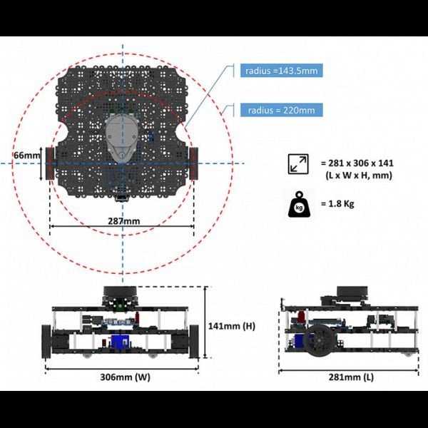 • Dilengkapi dengan Sensor (Raspberry Pi Camera, LiDAR 360, 3-Axis Gyroscope, 3-Axis Accelerometer, dan 3-Axis Magnetometer)